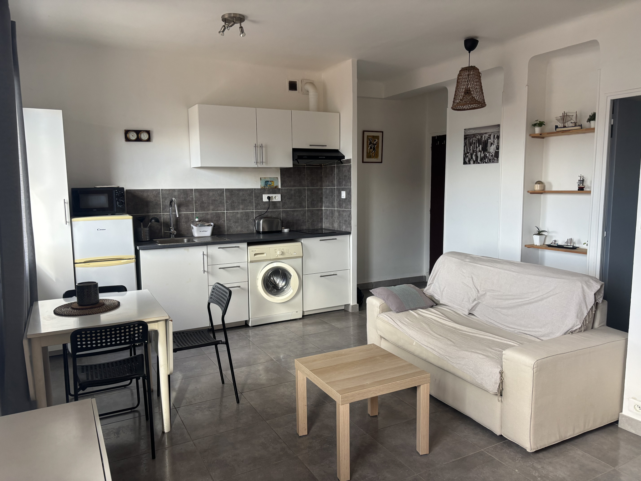 Studio meublé – rue d’Endoume. Situé en plein coeur de la rue Endoume, beau T1 entierement meublé et équipé., 5ème étage avec ascenseur, Immeuble calme, proximité commerces et autoroutes