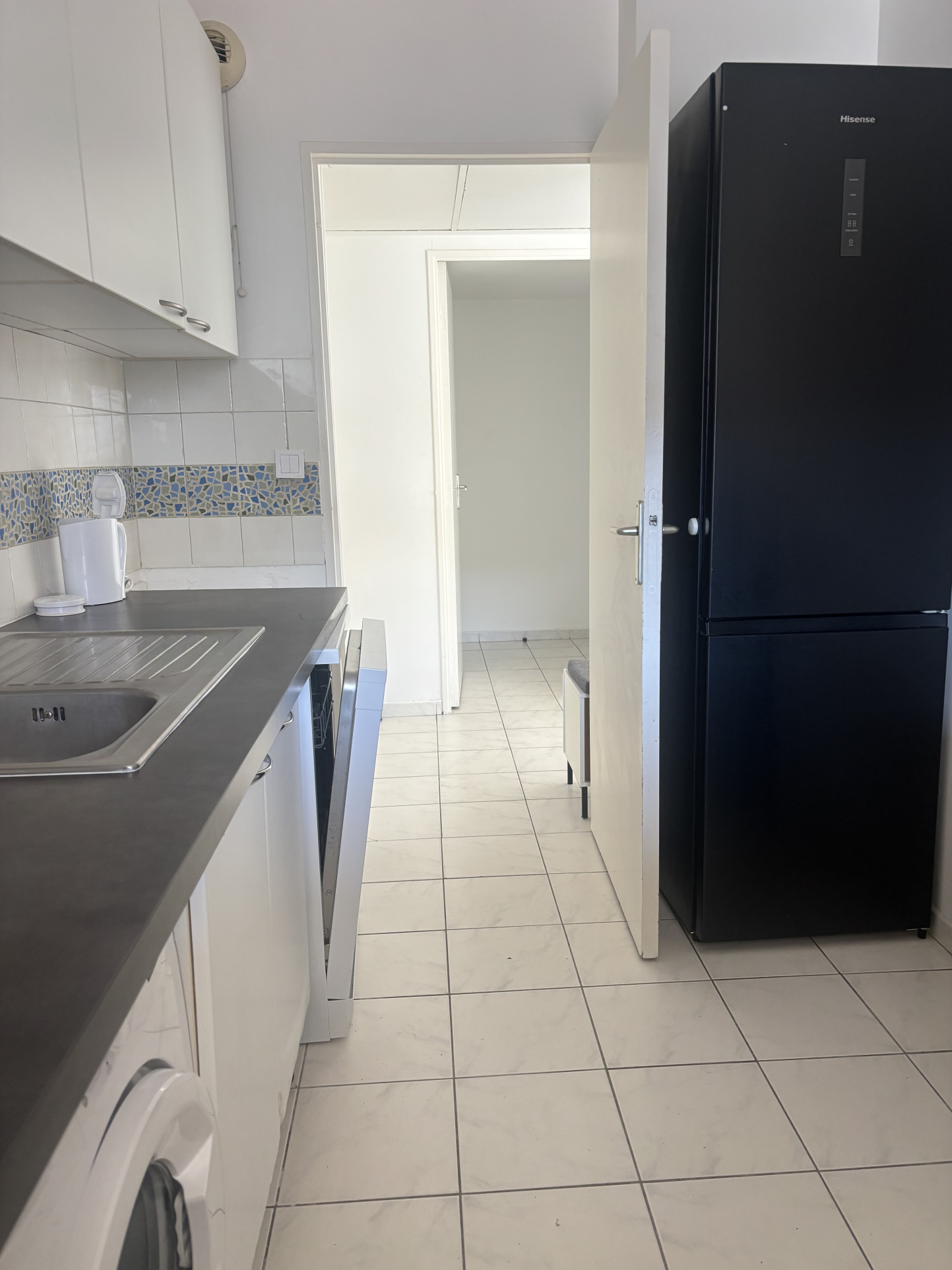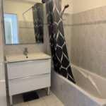 Le dégagement mene aux toilettes, et à la salle de bains. Un placard supplementaire existe également